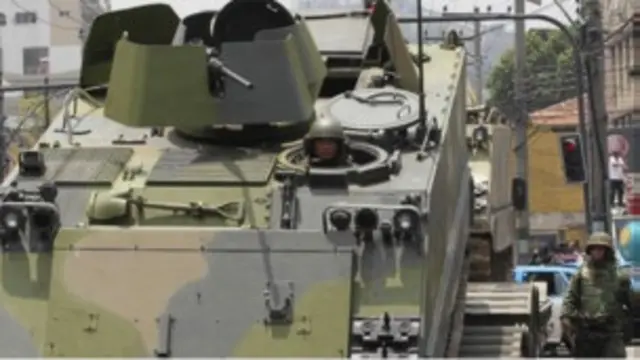 Brezilya güvenlik kuvvetleri Rio de Janeiro'nun bir gecekondu mahallesinde patlak veren uyuşturucu savaşını kontrol altına almak için bölgeye zırhlı araçlar sevketti.