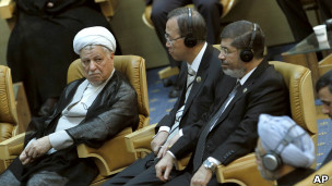 İran'daki Bağlantısızlar Hareketi zirvesinde Mısır Cumhurbaşkanı Muhammed Mursi'nin Suriye'deki muhaliflere selam göndermesi üzerine Suriye heyeti salonu terk etti.