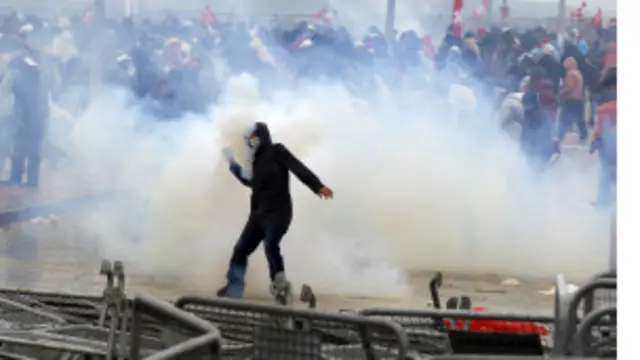 Duruşmayı izlemek üzere Silivri'de bulunan gazeteci Rengin Arslan o sırada"Tüm Silivri yerleşkesi bir gaz dumanı altında. Mahkeme salonunda da heyet ile milletvekilleri, gazeteceler ve avukatlar arasında tartışmalar yaşandı" diyordu.