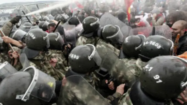 Barikatların arkasında ise hem jandarma hem polis var. Barikatın önünde ise kurulmuş bir kürsüde konuşmalar yapılıyor. Sık sık "İmralı" kelimesi geçiyor konuşmalarda. MİT ve İmralı'da hapis PKK lideri Abdullah Öcalan arasında yapılan görüşmelere tepkiler var.