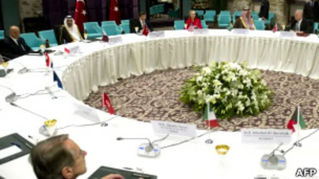 Rusya ve Çin'in vetoları nedeniyle BM zemininde, müzakereye dayanan bir diplomatik sonuç çıkması olasılığı iyice azaldığından, bu 11 ülkenin Suriye'de siyasi dönüşümün "bu sene içinde sağlanması" için çalışmalarına ağırlık verecekleri kaydediliyor.