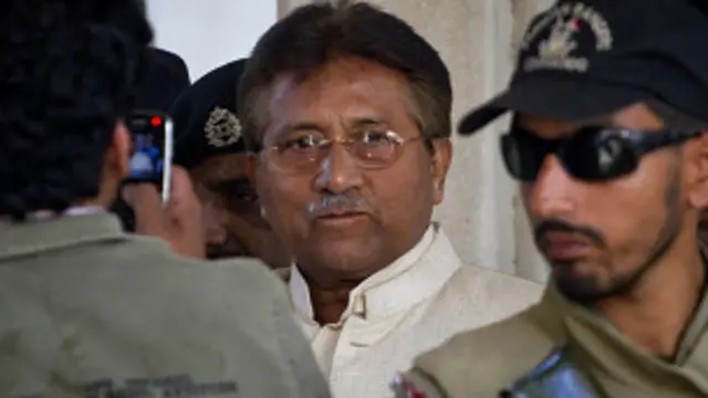 Televizyonda yayınlanan görüntülerde, General Müşerref, üniformalı polisler tarafından İslamabad'da bir mahkemeye götürülürken görülüyor.
