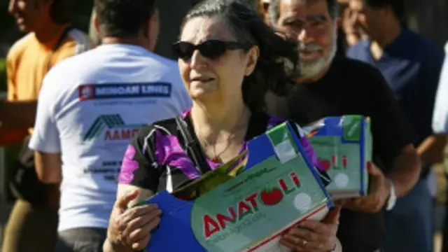 Özel polis ekipleri, parlamentonun bulunduğu Sintagma Meydanı'nda partililerin bir kamyonla gıda dağıtımını durdurmak için gözyaşartıcı gaz kullandı.