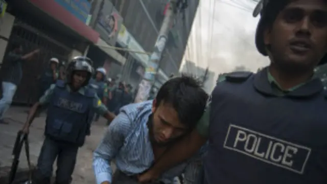 Polis, Dakka'nın iş merkezi olan Motijheel bölgesini kontrolü altına almaya çalışırken, bölgeyi işgal eden binlerce İslamcı protestocu kaçarken görüldü.