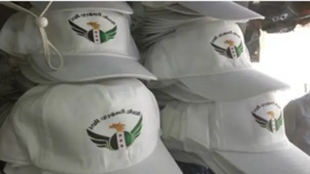 Holozoğlu mağazası tişört ve şapka satıyor. Özgür Suriye Ordusu armalı onlarca şapka dizilmiş bir rafa. Mağazanın sahibi Türk.