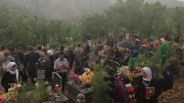 Mehmet Ali Tosun’un mezarının yanında sohbet ettiğimiz Zeki Tosun mezarlıktaki kalabalığı göstererek: “Buradakilerin hepsi yakınlarını kaybeden ailelerdir. Kaybı olmayanlar gelmiyor çünkü korucular üzerinden onları gelmemeleri için tehdit ediyorlar” diyor.