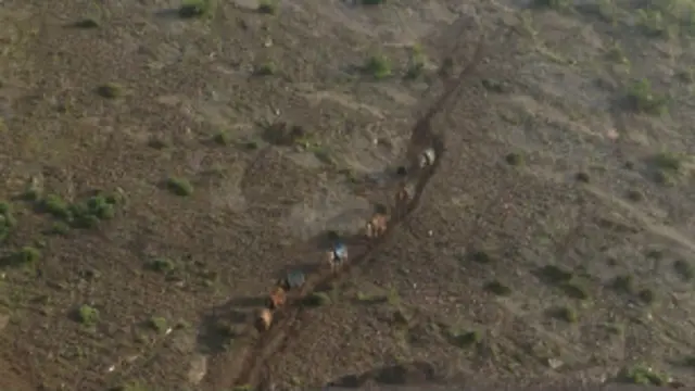 Görüyorum ki dağlardan bir grup katırlarıyla iniyor.