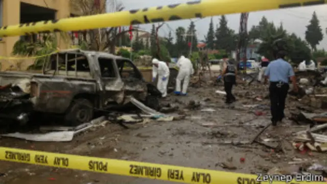 Patlamaların merkezinden ayrılırken birçok Suriye plakalı araca rastlıyorum, hepsi tahrip olmuş.