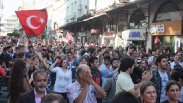 Daha çok gençlerin katıldığı eylemde ileri yaşıyla dikkat çeken Şerif Kerem’in söyledikleri “eğlence programlarının Türkiye’sinden” farklı bir resim çiziyordu: “Ben Aleviyim ölenler Sünni. Hepimiz kardeşimiz bizim. Bir arkadaşım var orada, olay olunca hemen onu aradım. Bizim burada Aleviler ve Sünniler arasında hiçbir zaman bir problem olmadı, şimdi de yok. Mezhepçilik için insanları kışkırtıyorlar, buna hiç kimse burada izin vermez.”