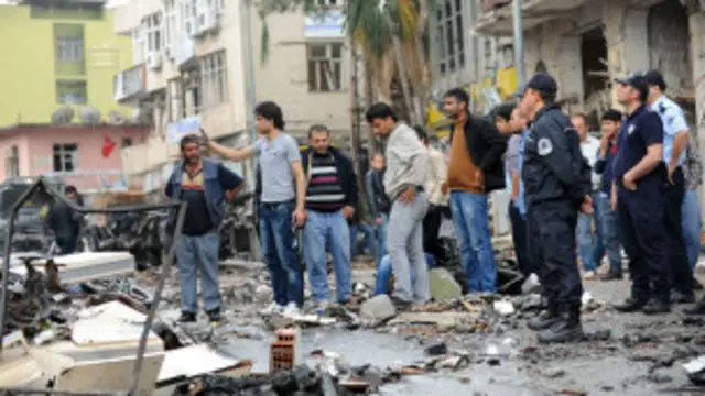 Davutoğlu ise savaşı sonlanmamasını uluslararası toplumun harekete geçmemesine bağlıyor: 'Bu saldırı, uluslararası toplumun harekete geçmemesi durumunda bir kıvılcımın nasıl yangına dönüşebileceğini gösterdi. Suriyelilerin ve Türklerin bunun cezasını çekiyor olması kabul edilemez.'"