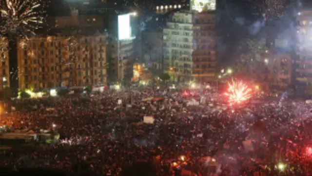 Mursi karşıtı göstericilerin toplandığı Tahrir Meydanı'nda ordunun açıklamasıyla havai fişekler atılmaya başlandı.