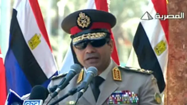 Muhammed Mursi sonrası yeni hükümette Savunma Bakanı olarak da görev alan Sisi, "Halkın Cuma günü sokaklara çıkıp ordu ve polise olası şiddet ve terör olaylarıyla mücadele etmeleri için yetki vermelerini istiyorum" dedi.
