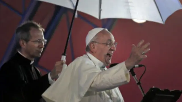 Papa halka hitabında "Rioluların soğuğu ya da yağmuru sevmediklerini duyardım. Ama inancınızın güçlü olduğunu gösterdiniz" diyerek şakalaştı.
