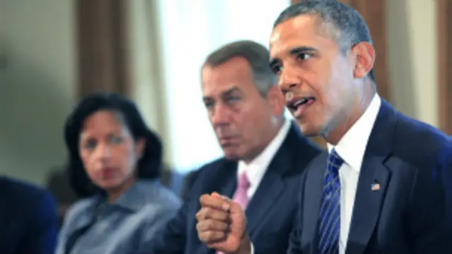 Başkan Obama ve Başkan Yardımcısı Joe Biden, Salı günü Washington'da Kongre'nin alt kanadı Temsilciler Meclisi Başkanı John Boehner, Demokratların Temsilciler Meclisi lideri Nancy Pelosi ve Ulusal Güvenlik Komitesi üyeleriyle bir araya gelmişti.