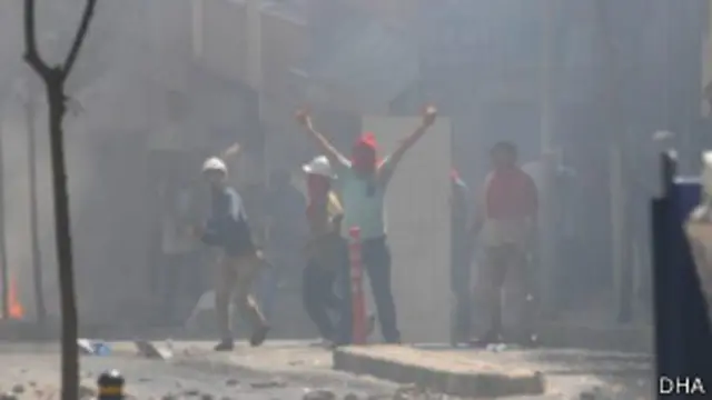 DHA, bunun ardından ara sokaktan çıkan maskeli üç kişinin polise molotofkokteyli ve taş attıklarını; bunun üzerine polisin de göstericilere biber gazıyla müdahale ettiğini yazdı.
