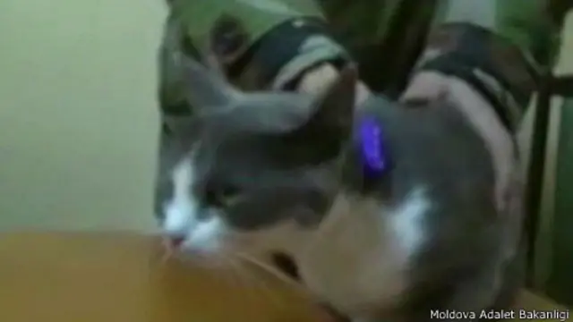 Moldova adalet bakanlığı, kedinin "aramadan geçöirildiğini" gösteren videoyu internete yükledi.