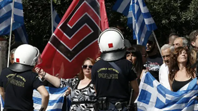 Parti önde gelenlerinin mahkemeye çıkarılması sırasında, çok sayıda özel güvenlik biriminin görevlendirilmesi, Altın Şafak partisinin, kamuoyu yoklamalarında puan kaybetmiş gibi görünse de, hala önemli bir desteğe sahip olduğuna işaret ediyor.