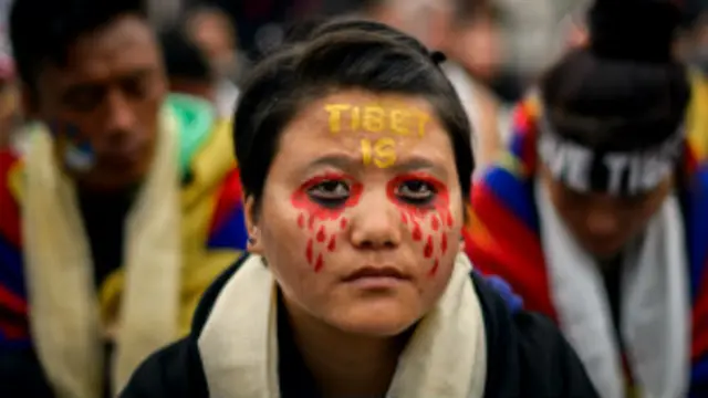 Toplantı öncesinde bir grup, Birleşmiş Milletler binasında, Çin'in Tibet'te işlediğini savundukları insan hakları ihlallerini protesto etmek için büyük bir pankart açtılar.