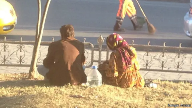 Laleli’ye giden yolda bir ağacın dibinde oturan iki çocuklu bir aile ise sitemliydi.