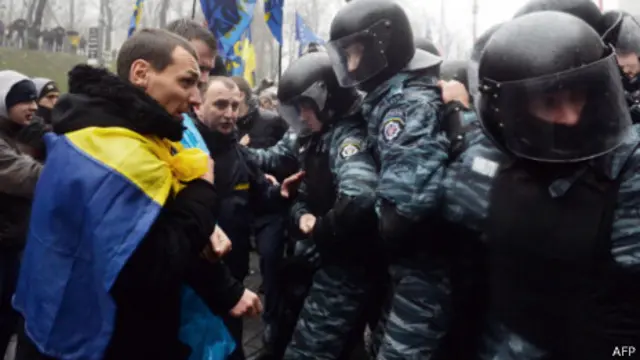 Ukrayna hükümetinin kararı, AB yanlılarının polisle çatıştığı Kiev sokaklarında öfkeye neden oldu.