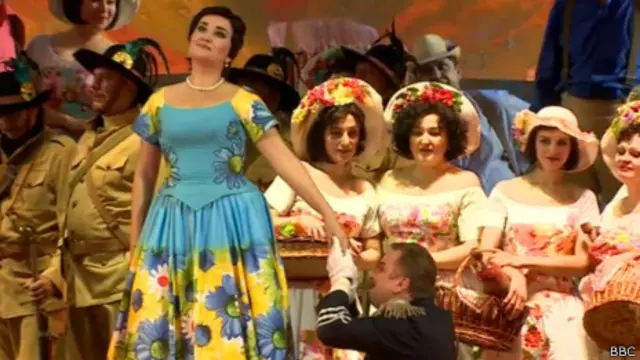 Opera’ya dönecek olursak, tahmin edildiği gibi genç kız köylüye âşık olur ve günbatımına doğru beraber yürüdükleri mutlu bir sonla biter.