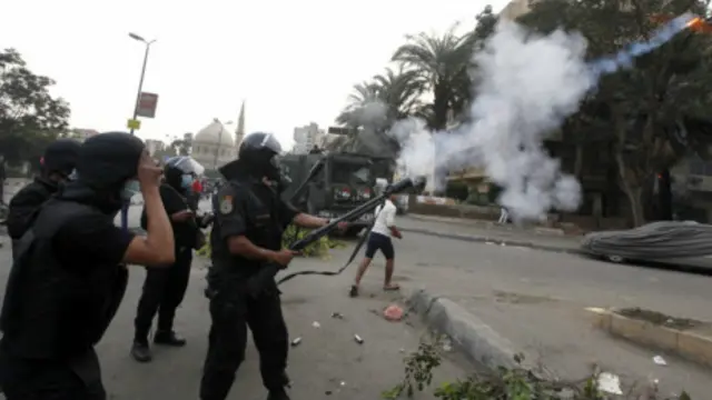 Devrik cumhurbaşkanı Muhammed Mursi taraftarlarından oluşan göstericilere polisin göz yaşartıcı gaz kullanması üzerine göstericiler taş atarak karşılık verdi.