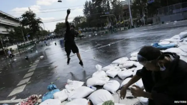 Bangkok'ta bulunan BBC muhabiri Jonah Fisher, protestocuların bazı televizyon binalarına girdiklerini ve idareyi ele almaya çalıştıklarını söylüyor.