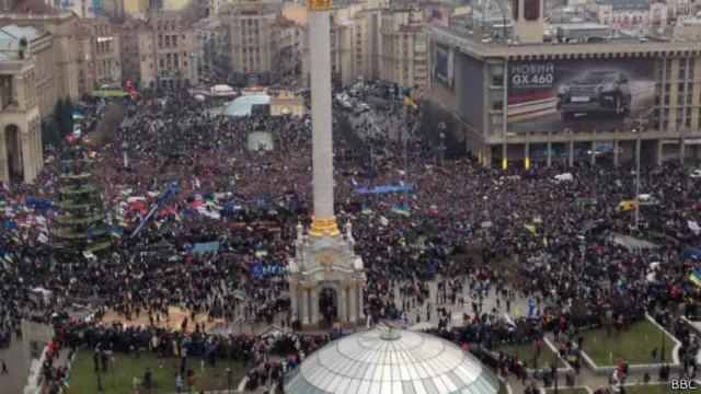Anlaşmayı Rusya'nın baskısıyla imzalamadığını açıklayan Cumhurbaşkanı Viktor Yanukoviç'in azledilmesi isteyen on binlerce kişi, gösteri yasağına rağmen başkent Kiev'deki Bağımsızlık Meydanı'nda toplandı.