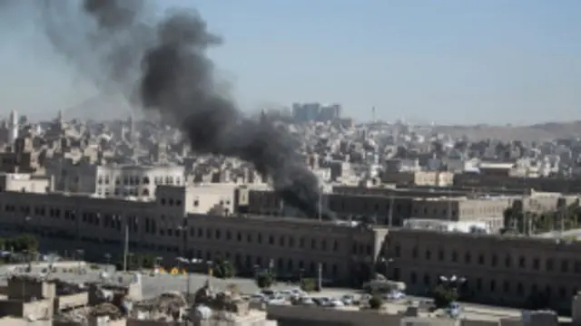 Sanaa'nın Bab el Yaman bölgesindeki kompleksin girişinde patlayıcı yüklü bir aracın infilak ettiği ve yakınlardaki bir hastanenin içinde de silahlı çatışma yaşandığı belirtiliyor.