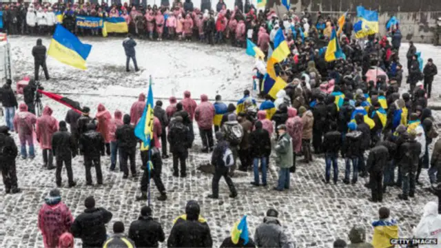 Göstericiler Yanukoviç'in AB görüşmelerinde son dakikada 'U dönüşü' yaparak yıllardır hazırlığı yapılan ortaklık anlaşmasını imzalamamasını protesto ediyor.