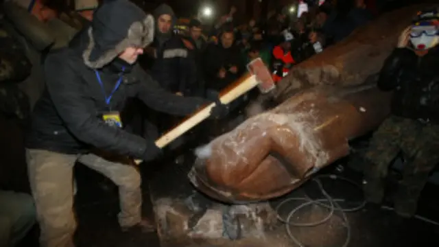 BBC’nin olayları izleyen muhabiri David Stern, heykelin yıkılmasının Kiev’de tansiyonu yükselttiğini söyledi.