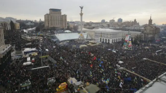 Yanukoviç aylar süren müzakerelerden sonra, Rusya'nın baskısıyla anlaşmayı imzalamamıştı Yanukoviç, Salı günü Rusya Federasyonu Başkanı Vladimir Putin'le bir araya gelecek. Avrupa Birliği, Ukrayna'nın tavrı netleşinceye kadar müzakereleri askıya almıştı. Uluslararası haber ajanslarının Kiev'deki Bağımsızlık Meydanı'nda toplananların sayısıyla ilgili tahminleri 150 bin ile 300 bin arasında değişiyor.