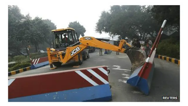 Polis Delhi'deki ABD büyükelçiliği önünden beton barikatları kaldırdı ve yetkililer ülkeyi ziyaret eden ABD heyetini kabul etmedi.
