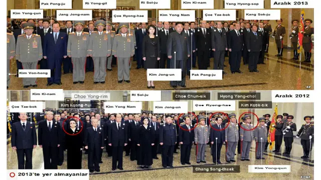 Kuzey Kore'nin iki yıl önce ölen lideri Kim Jong-il için düzenlenen anma merasimlerinde ülkenin önde gelenleriyle çekilen fotoğraflar, ülkenin lideri Kim Jong-un'un tasfiye operasyonu ile ilgili önemli bir tablo ortaya koydu.