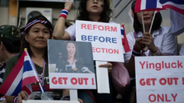 Göstericilerin talebi, Başbakan Yingluck Şinavatra'nın istifa ederek yönetimi bir "halk konseyine" bırakması.