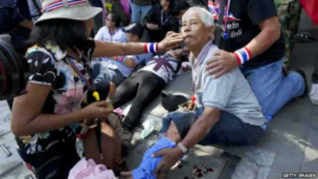 Suthep Thaugsuban liderliğindeki protestocuların üzerine bir binadan atılan patlayıcı göstericlerin yanısıra bazı güvenlik görevlilerinin de yaralanmasına neden oldu.