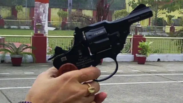 Silah fabrikasının Genel Müdürü Abdül Hamid, işlemeleriyle göze de hitap eden ve "Hindistan'ın kadınlar için üretilen ilk tabancası" olarak sunulan silahı taşıyan kadınların korku duymayacaklarını söylüyor.