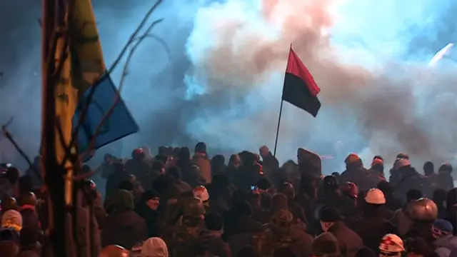 Ukraynalı muhalif göstericiler, Cumhurbaşkanı Yanukoviç'in Avrupa Birliği ile planlanan ticaret anlaşmasını terkederek Rusya ile daha yakın bağlara odaklanmasını protesto ediyor.