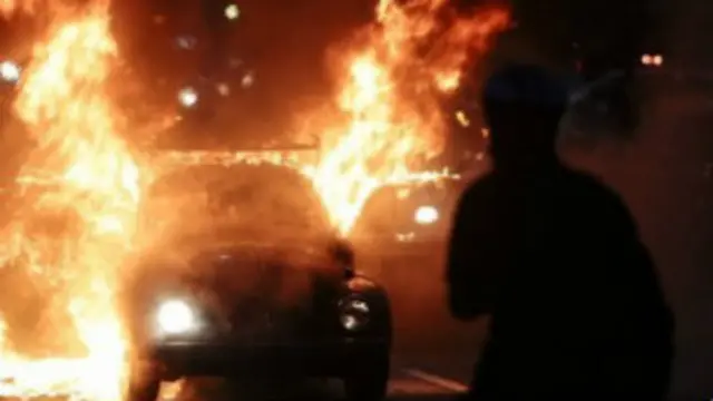 Bir araç ateşe verildi, mağazalar, banka şubeleri ve bir polis aracı zarar gördü.