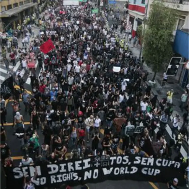 Dünya Kupası'nın Brezilya'ya mali yükünün ağır olacağını savunanların gösterisine yaklaşık 2,500 kişi katıldı.