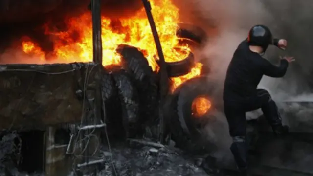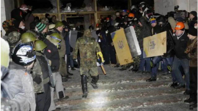 Başkent Kiev'de prorestocularla polis arasındaki çatışmalar gece boyunca devam etti. Protestocular, içinde polis memurlarının bulunduğu bir binaya saldırdı.