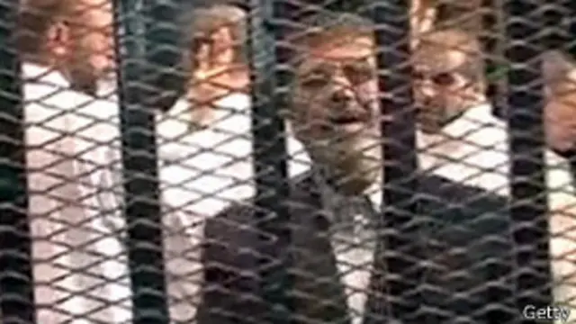 Mısır'da askeri darbeyle devrilen eski Cumhurbaşkanı Muhammed Mursi, 2011 yılında hapishaneden kaçtığı gerekçesiyle yargılanmak üzere mahkemeye çıkarılıyor.