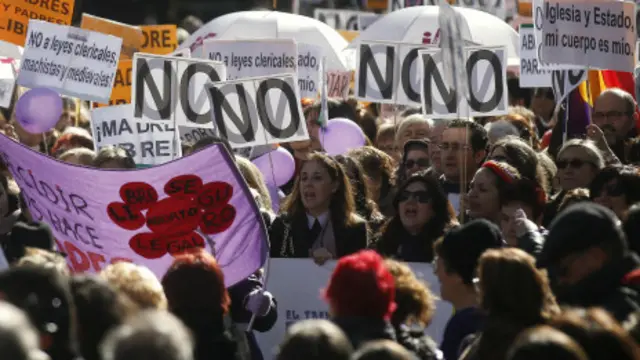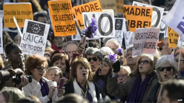 Muhalefet partilerinden birçoğunun da desteğini alan protestocular, yasa tasarısını hazırlayan Adalet Bakanı Alberto Ruiz-Gallardon'u istifaya çağırdı.