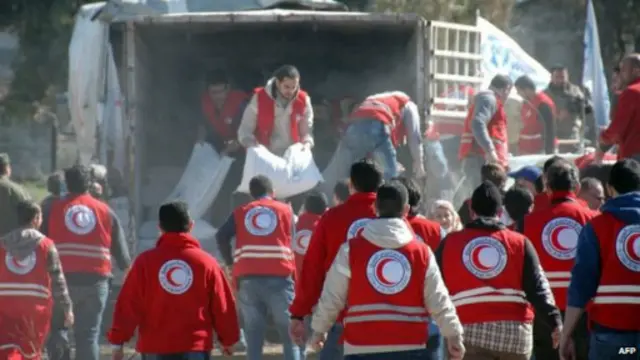 Her şoför, kontağı kapatmadan kısa bir süreliğine duraklıyor ve Suriye Kızılay’ında çalışan kırmızı yelekli genç gönüllülerin, dışarıda insan koridoru oluşturmasını bekliyor.
