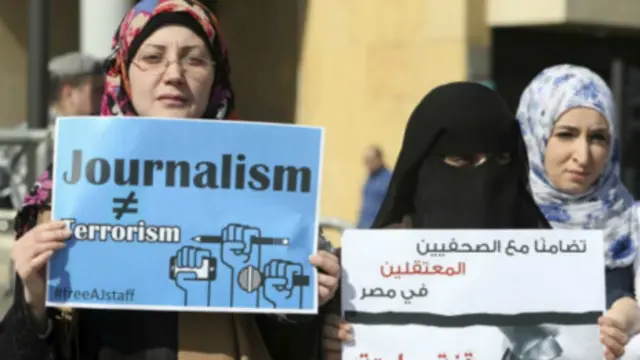 Mısır'da insan hakları grupları şu anda Al Jazeera çalışanları da dahil 13 yerli ve yabancı gazetecinin tutuklu olduğunu söylüyorlar. Bu sayıyla Mısır dünyada en çok gazeteci hapseden 10 ülke arasında.