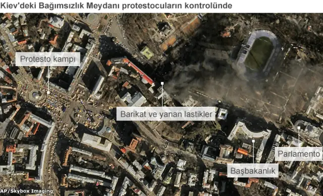 Daha erken saatlerde Kiev'de göstericilerin kampının bulunduğu Meydan'a doğru iki zırhlı aracın gittiği görülmüştü.