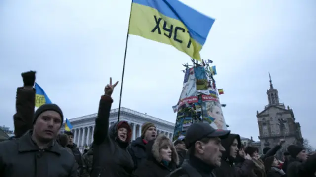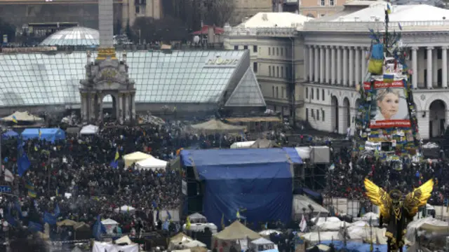 Kiev'in Bağımsızlık Meydanı'nda hala binlerce protestocu bulunuyor. Ancak Meydan'da durum sakin.