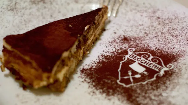 Tiramisunun kökenine ilişkin tartışmalar olsa da, "genelevlerde yorgun düşenlere güç takviyesi" amacıyla kullanılan geleneksel bir tatlıdan geldiği söylenir. Kimileri "tiramisu" (beni yukarı çek) adının da bu güç takviyesine işaret ettiğini, kimileri ise tatlının afrodizyak etkisi göstermesi nedeniyle daha erotik bir anlam içerdiğini iddia eder. Le Beccherie'nin ilk sahipleri Alba ve Aldo Campeol ile pasta şefleri Roberto Linguanotto'nun 1950'lerde bu genelev tatlısının tarifiyle oynayarak bugünkü tiramisuyu yarattığı ve ismini de onların koyduğu kabul edilir. Tiramisunun orijinal tarifinde savoyardi bisküvisi, yumurta sarısı, şeker, kahve, mascarpone peyniri ve toz kakao kullanılır.
