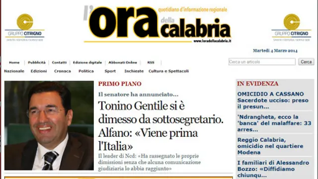 Ancak bu haberin yerel "L'Ora della Calabria" gazetesinde yayımlanmasının Gentile'nin talimatıyla engellendiği iddia ediliyordu. L'Ora della Calabria gazetesi ise, yayın yönetmeninin haberin yayımlanmaması talebini kabul etmediğini, ancak bir "teknik sorun" nedeniyle haberin gazetede çıkmadığını öne sürüyordu.