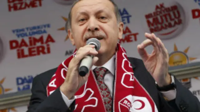 "Erdoğan yolsuzluk iddialarını Türkiye'nin geleceği adına bir ölüm kalım mücadelesi olarak tanımlıyor ve iddiaları ülkenin siyasi ve ekonomik çöküşünü amaçlayan iç ve dış düşmanların uydurduğunu savunuyor. Seçim konuşmalarında birçok kez kendini 1950'de ülkenin ilk serbest seçimlerinde iktidara gelen Adnan Menderes'e benzetiyor. Erdoğan gibi Menderes de karizmatik ve popülist bir liderdi ve iktidarının son yıllarında otoriter bir tutum almıştı. 1960'taki askeri darbeyle devrildi, yargılandı ve asıldı. Erdoğan Bakırköy'deki mitingde 'Menderes'e yaptıklarını bana da yapmak istiyorlar' dedi. Rakiplerini ana muhalefetteki Cumhuriyet Halk Partisi'nin temsil ettiği eski laik seçkinler, müphem dış güçler ve ABD'de yaşayan imam Fethullah Gülen'in liderliğindeki İslami hareket olarak saydı. Erdoğan seçmenden oy isterken etkileyici siciline işaret ediyor. 11 yıllık iktidarında dev altyapı programları ve sağlıkta reformlar gerçekleştirdi, dindar çoğunluğun üzerindeki laik kısıtlamaları kaldırdı ve Türkiye'nin bölgesel bir güç olarak ortaya çıkmasına liderlik etti."